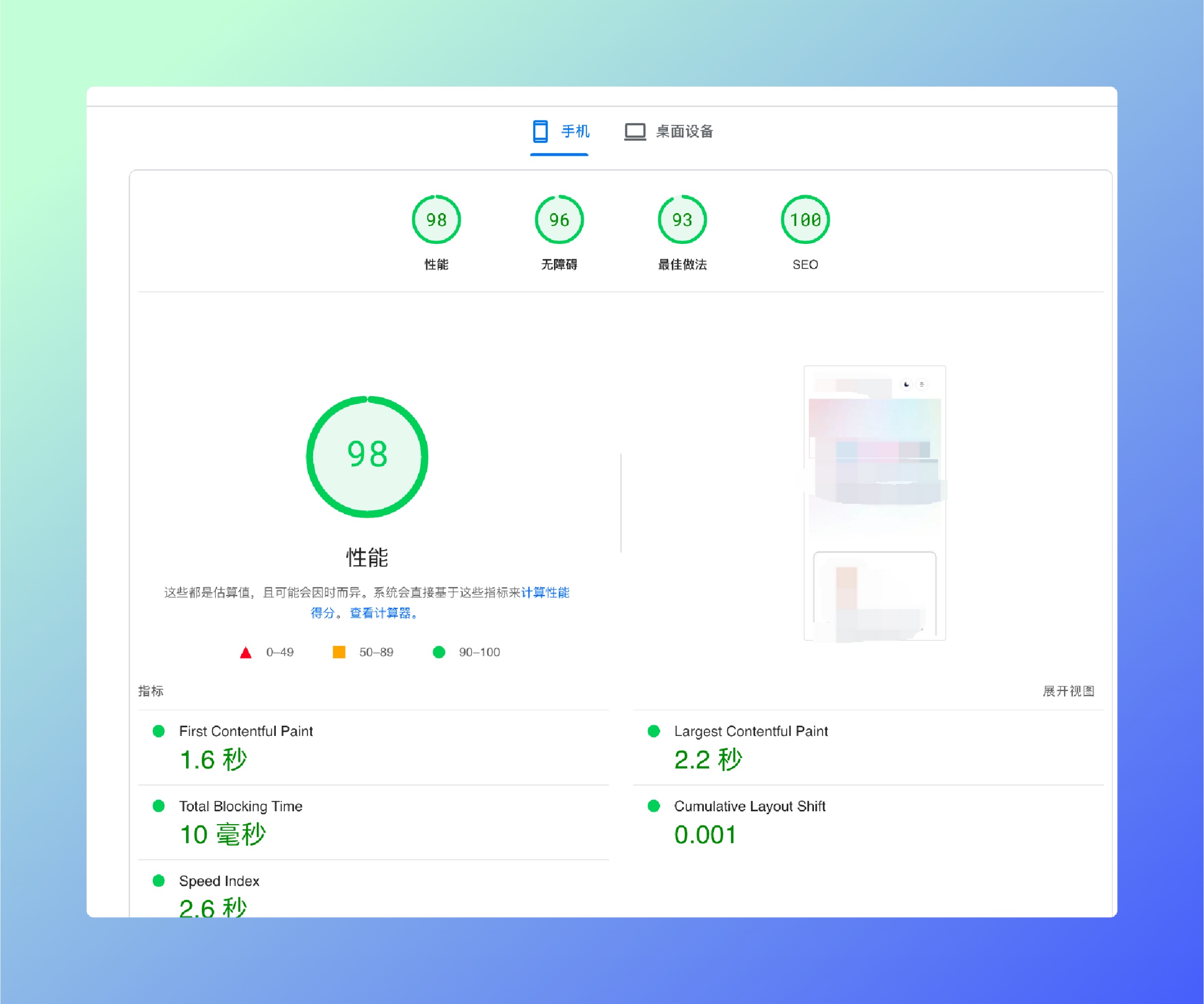 网站主题是基于underscores+tailwindcss搭建的,也是借助cursor完成,这样做的目的是我有强烈的速度优化焦虑,所以主题都是自己定制,测速效果如下: