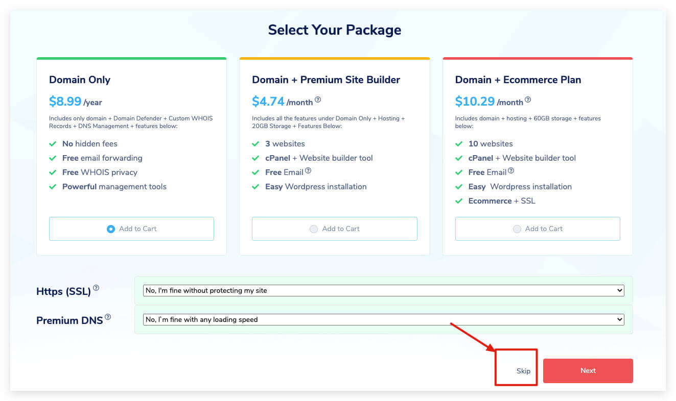 然后会出现一个购买namesilo的新套餐,点击跳过即可: