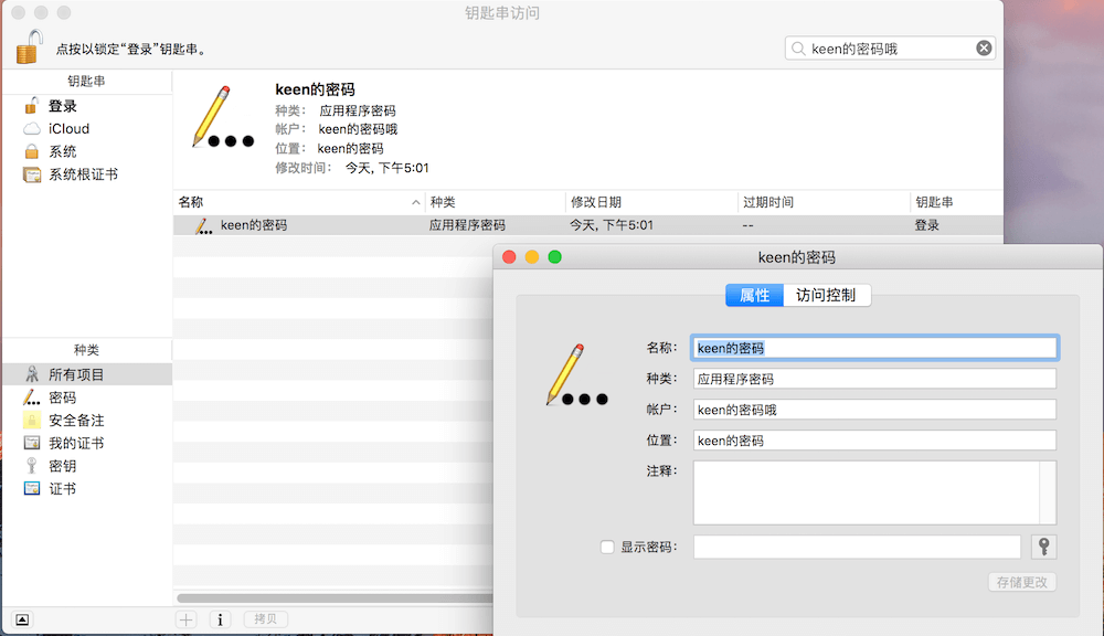 由于工作关系,会接触一大堆的账号密码,试过很多软件类似1passord等都不如意,不过自从我知道Mac自带的「钥匙串访问」,从此觉得其他都是垃圾!