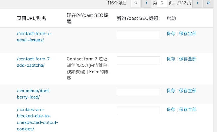 如果你的网站页面挺多的,可以到yoast seo插件界面批量编辑SEO Title: